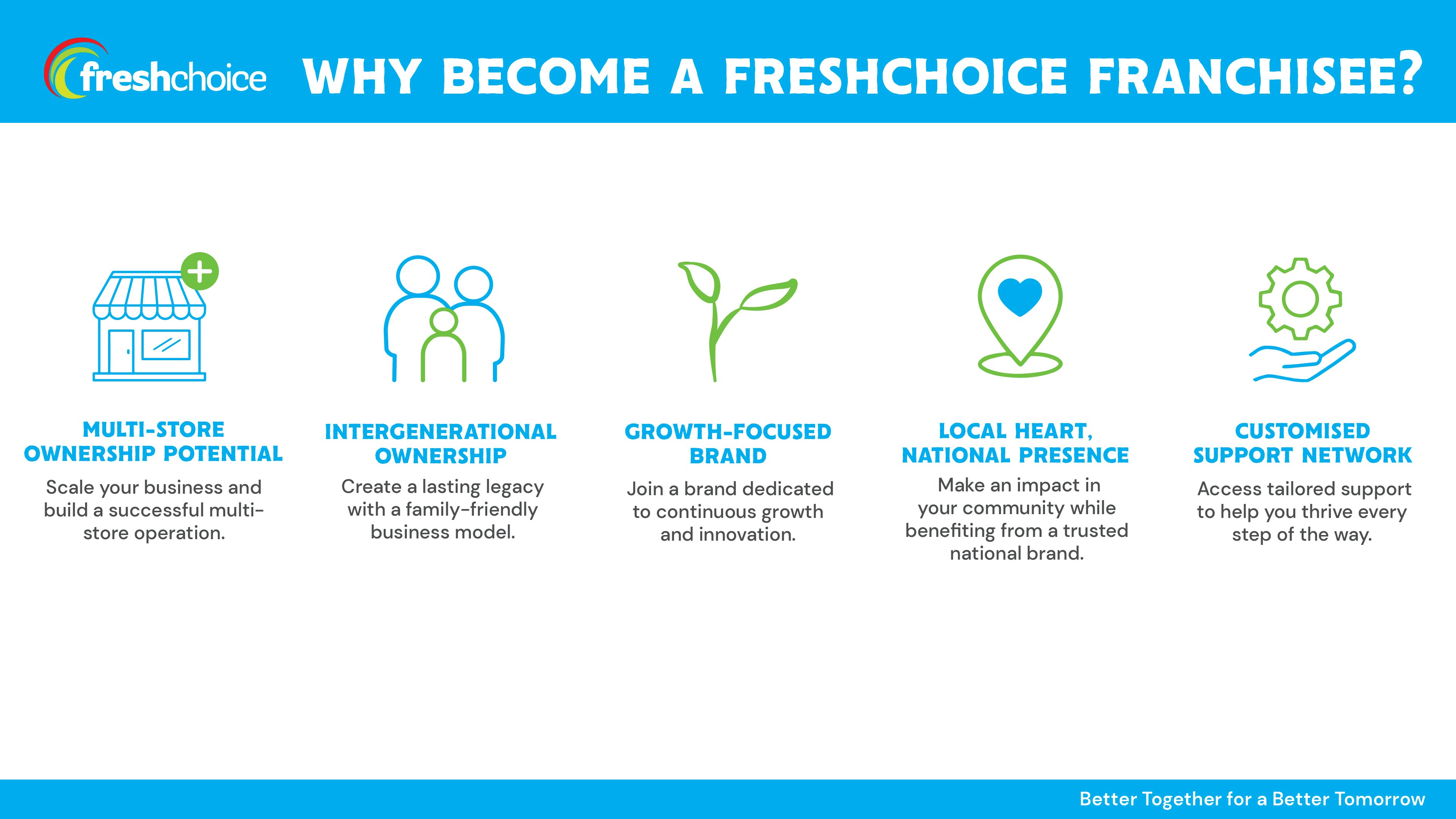 Explore the journey to becoming a FreshChoice franchise owner. Understand the benefits, map out your ownership pathway, and decide if FreshChoice is the right fit for you.