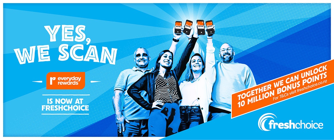 To celebrate, If FreshChoice shoppers hit one million Everyday Rewards scans by the 16th November, you could be in to win your share of 10 million bonus points.