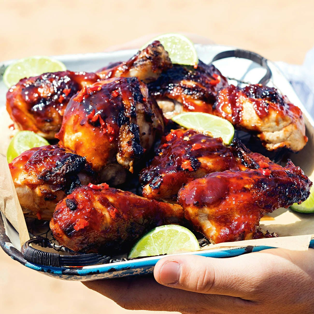 - Set aside half the barbecue sauce for serving. Continue cooking chicken, uncovered, basting occasionally with half the sauce for 10 minutes or until chicken is cooked through. Stand, covered, for 10 minutes before serving with reserved sauce and lime wedges.